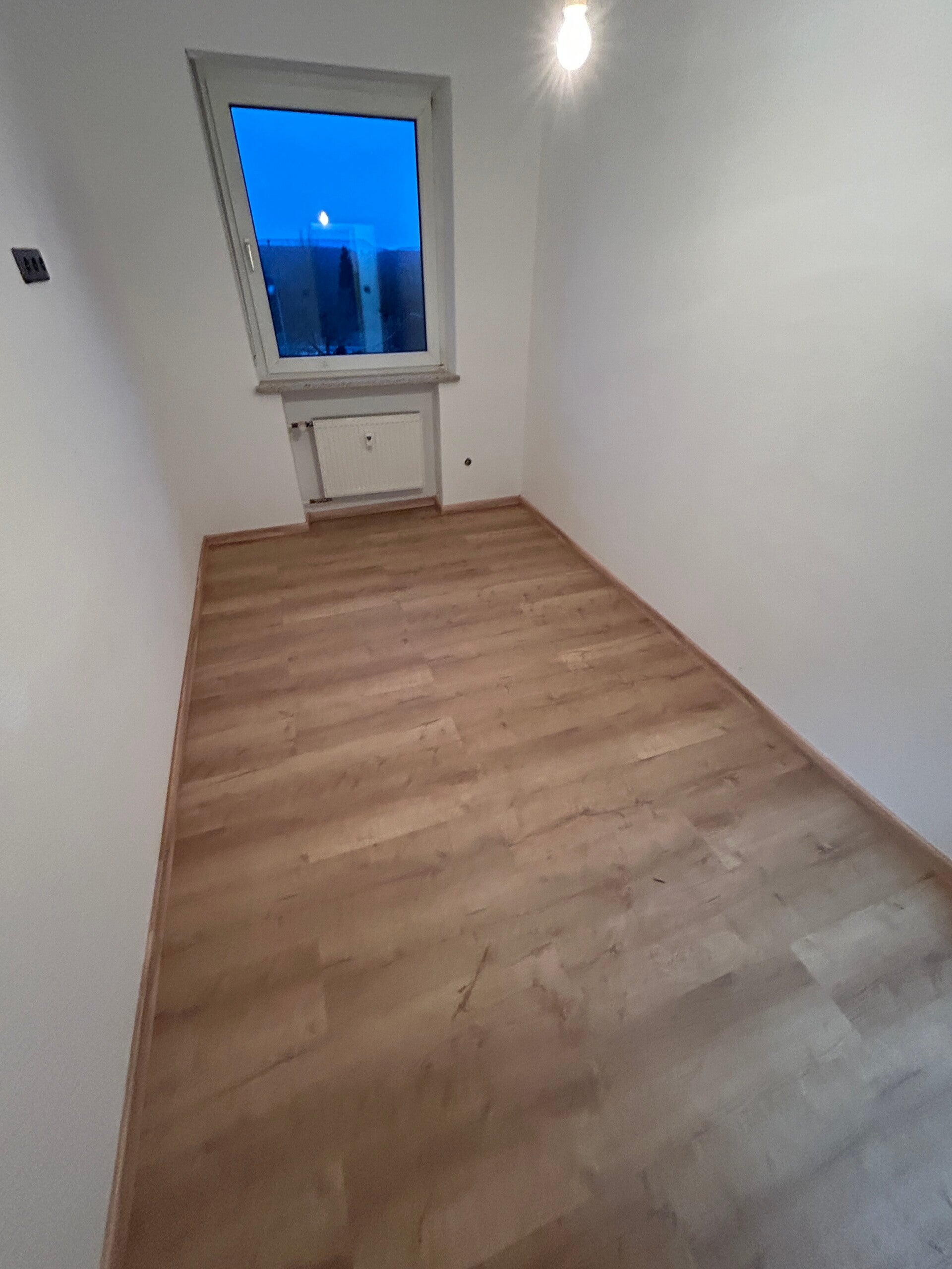 Hier haben wir einen Hochwertigen Klick-Vinyl Boden inkl. Sockelleisten verlegt. Auch andere Beläge wie Laminat oder Teppichboden können wir professionell für sie verlegen.